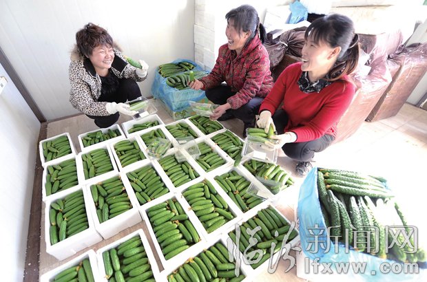 12月16日,在堯都區(qū)堯廟鎮(zhèn)下靳村精品水果化蔬菜種植基地,山西淼源農(nóng)業(yè)開發(fā)有限公司的工作人員在將水果黃瓜裝箱。