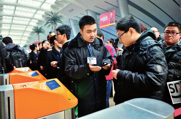 來自天津鐵道職業技術學院的學生志愿者們,在各自的崗位上迎接考驗。今年春運期間,該校有410多名學生到北京站、北京鐵路客戶服務中心、天津站等地志愿協助售票、驗票、引導、話務等工作。 新華社發