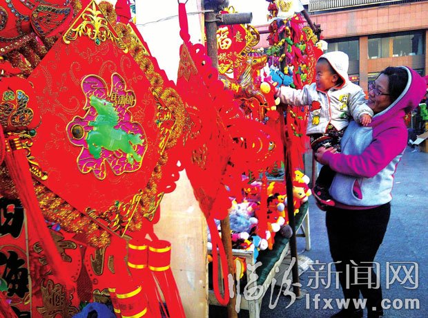 隨著春節的臨近,年味越來越濃,大街小巷處處洋溢著濃郁的年味。1月22日上午,記者在平陽廣場看到,年畫、福字、對聯、窗花、中國結、掛簽等物品紛紛上市熱賣,紅彤彤的掛簽、紅紅火火的鞭炮掛飾尤其引人矚目。