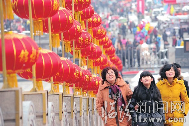 正月初十,在我市華門景區隨處可見懸掛的大紅燈籠,為節日增添了許多喜慶氣氛。