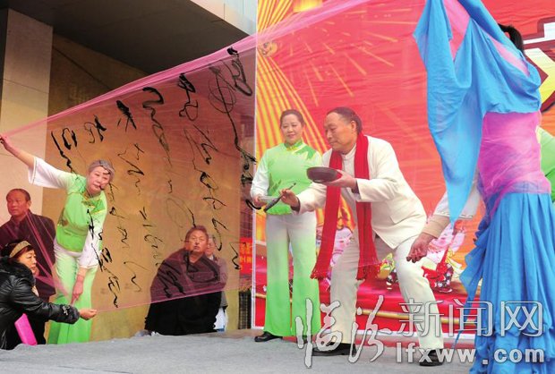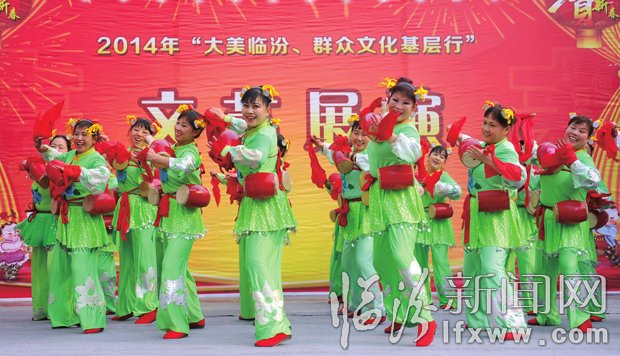 2月10日,2014年“大美臨汾,群眾文化基層行”文藝展演在市群藝館前小廣場舉行,來自全市的14支文藝隊伍表演了舞蹈、花鼓以及曲藝等豐富多彩、喜聞樂見的節(jié)目,烘托了祥和的節(jié)日氣氛,喜迎元宵佳節(jié)的到來。記者 閆銳鵬 攝