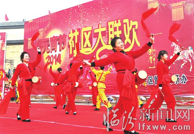2月13日下午,古縣群眾在“2014元宵節(jié)社區(qū)大聯(lián)歡”活動中表演文藝節(jié)目。 記者 李虎威 攝