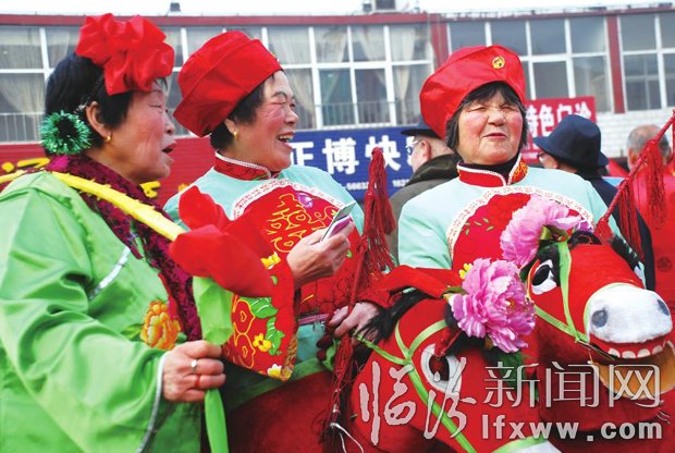 2月13日,霍州市辛置鎮(zhèn)老年演出隊在進(jìn)行社火表演。 記者 李自強(qiáng) 攝