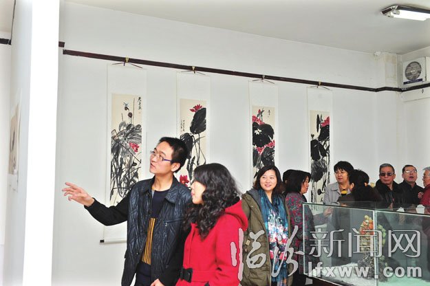 3月8日,書畫愛好者在觀看畫展。當日,由市文聯和婦聯主辦的主題為“美在臨汾、美好家園、美麗人生”慶“三八”王麗英、梅瑩、成果三人女子畫展在晉寶齋舉行,共展出她們三人創作出來的精品國畫60余幅,旨在豐富廣大女性朋友的業余生活,倡導高雅文化,提高審美能力。 本報記者 閆銳鵬攝