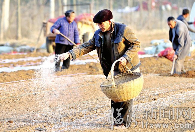 三月二十一日江蘇省淮安市盱眙縣王店鄉馬場村村民在田間施肥當日是農歷二十四節氣中的春分江蘇省淮安市盱眙縣農民抓緊農時進行春播春種, 田間地頭一片忙碌的生產景象。 新華社發