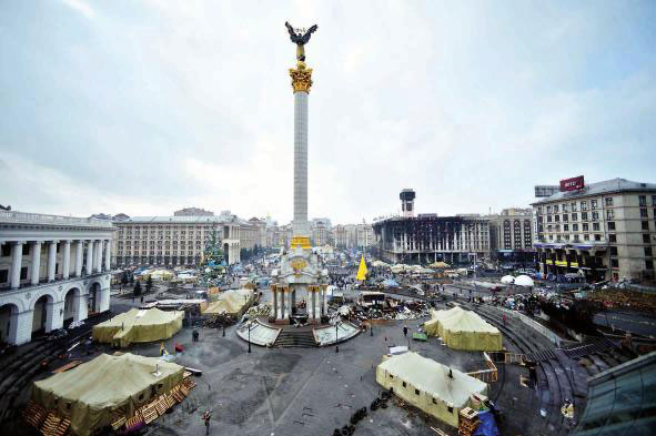 3月19日,在烏克蘭首都基輔,獨立廣場散落著反對派遺留的帳篷。