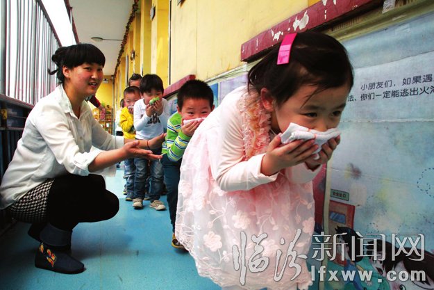 在安全教育日到來之際,我市的許多學校和幼托機構都通過主題班會、觀看安全教育影片、開展安全知識講座、逃生訓練等形式強化學生安全意識。圖為3月27日,堯都區中山幼兒園的小朋友們正在以班為單位進行消防逃生演練。