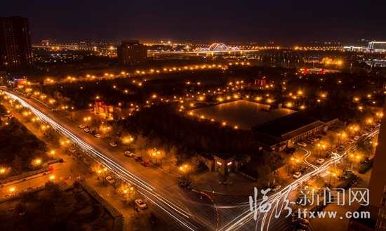 入夜,平陽璀璨奪目,分外迷人。街道旁、建筑上奪目而富于變化的夜景燈裝扮著大街小巷,如星月般點“靚”了城市,身在其中的市民無不感受:古城夜色靚了、美了! 記者 張蘊強 攝