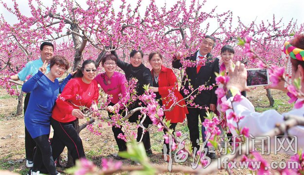 4月6日,清明小長假第二天,堯都區賀家莊鄉李家莊村第十一屆鄉村風情桃花會開幕,許多市民來到該村千畝桃園里踏青、賞花、游玩。該村不斷調整產業結構,發展一村一品產業,目前,已發展鮮桃1100畝。該村借助千畝桃園這個平臺舉辦桃花會,以花為媒,笑迎八方賓客,發展生態旅游、促進農民增收。圖為幾位市民在該村千畝桃園里拍照留念。