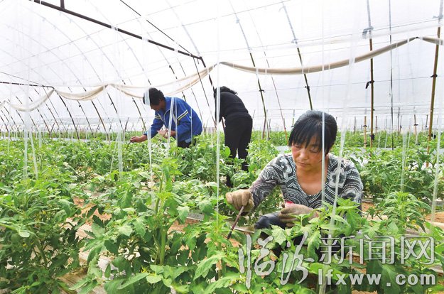 近日,在翼城縣南唐鄉寶豐生態農場拱棚內,工作人員忙著為西紅柿進行人工授粉。據技術人員介紹,為了提高產量,拱棚內的西紅柿苗必須及時進行人工授粉和疏花疏果,這樣長出的西紅柿不但果型好、顏色鮮亮,而且個頭大、產量高,很受市場青睞。 關川攝