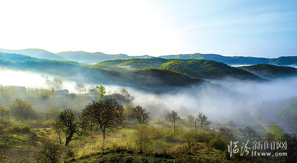 4月26日雨過天睛,霍山主峰出現(xiàn)壯觀“云海”。站在主峰上就能看到汾河兩岸云海在太陽照射下,翻江倒海,波濤洶涌,蔚為壯觀。而在主峰北側(cè)的古縣北平鎮(zhèn)向南望去,陽光透過晨霧,灑向古老的山村,山谷彌散的霧氣,形成漂亮的云海,樹木、山包在云霧中若隱若現(xiàn),如同仙境。