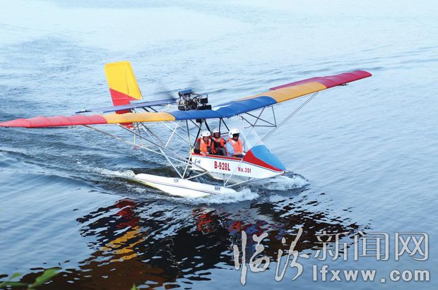 5月8日,在曲沃縣澮河水庫風(fēng)景區(qū),兩名游客正搭乘一架水上飛機(jī)進(jìn)行觀光游覽。澮河水庫是我省最大的中型水庫,總庫容9640萬立方米,常年蓄水水面1.5萬畝,是曲沃縣“六點(diǎn)一線”旅游景區(qū)之一。該縣著名農(nóng)民企業(yè)家、綠怡現(xiàn)代農(nóng)業(yè)科技有限公司總經(jīng)理馬曉羅于2011年春投資3000多萬元,在澮河水庫北岸開發(fā)建設(shè)具有晉國文化符號(hào)的古建筑群。五一”前夕,馬曉羅看準(zhǔn)商機(jī),投資50余萬元,從湖北津門中航605研究所購回一架A2C水上輕型觀光飛機(jī),為前來觀光的游客增加了一項(xiàng)新的娛樂項(xiàng)目。王建先 攝