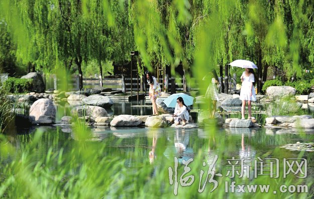 連日來,隨著天氣變暖,我市4A級景區(qū)汾河公園景區(qū)在藍天碧水、鳥語花香、綠樹成蔭的映襯下變得格外迷人,以其豐富的景致、獨特的魅力成為全市人民休閑放松的好地方。圖為5月21日,市民在汾河公園游玩。 本報記者 閆銳鵬 攝