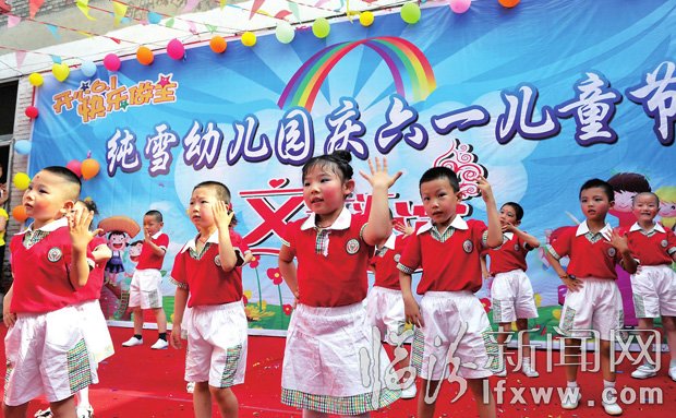 5月25日,純雪幼兒園的小朋友在表演節目。當日,純雪幼兒園舉辦了主題為“陽光下快樂成長”慶“六一”活動,孩子們表演了舞蹈、器樂以及童話劇,在歡歌笑語中慶祝自己節日的到來。 記者 閆銳鵬 攝