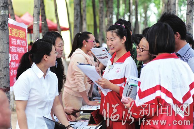 5月28日,臨汾汾河職業技術學校的畢業生正在與招聘單位洽談。