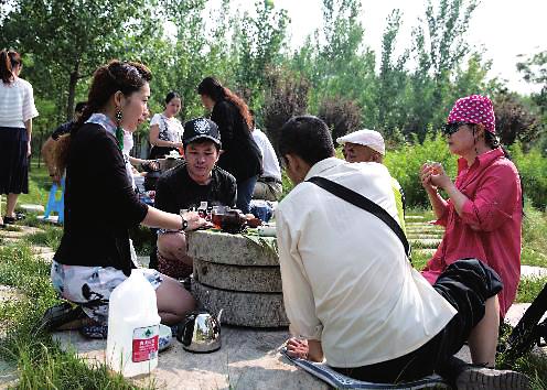 為了普及宣傳茶文化,6月1日清晨,我市龍潤茶會所舉辦了“體悟野茶,清涼一夏”茶會,受邀而來的我市文化、攝影、藝術界人士體驗了這別具一格的茶趣。在濱河公園堯井園,在“鑿井而飲,耕田而食”的傳說中,茶客們置茶席于磨上,茶與磨盤天然組合,給茶客們帶來了別樣的啟迪。