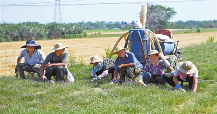 6月17日,在襄汾縣新城鎮新莊村,種植戶對中藥材遠志種籽進行采收作業。當前正值遠志收獲種籽的關鍵...