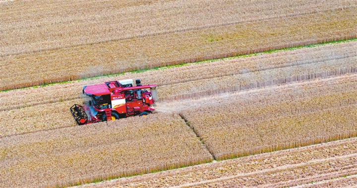 連日來,我市各地搶抓晴好天氣,有序開展夏收工作,廣袤田野里一派繁忙的豐收景象。圖為農機手正在堯...