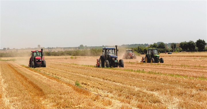 近日,在襄汾縣南賈鎮上魯村,農機手正駕駛復播機復播玉米。眼下,當地農民搶抓農時,復播秋糧,田間...
