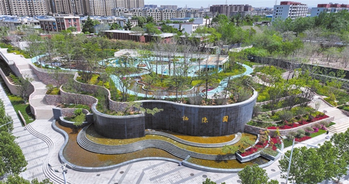 5月7日,市民在市區紫藤公園內休閑游玩。近年來,我市的“口袋公園”成為市民茶余飯后、休憩娛樂的新...