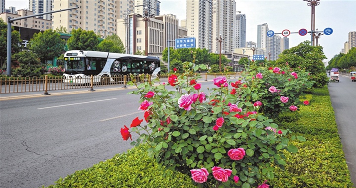 4月29日,市區解放東路的月季花競相開放,成為最美的街景。連日來,市區主干街道繁花盛放,步步皆景...