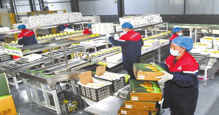 近日,在隰縣廣鑫農業科技股份有限公司出口水果包裝車間內,工人正在對玉露香梨進行等級分揀。該公司...