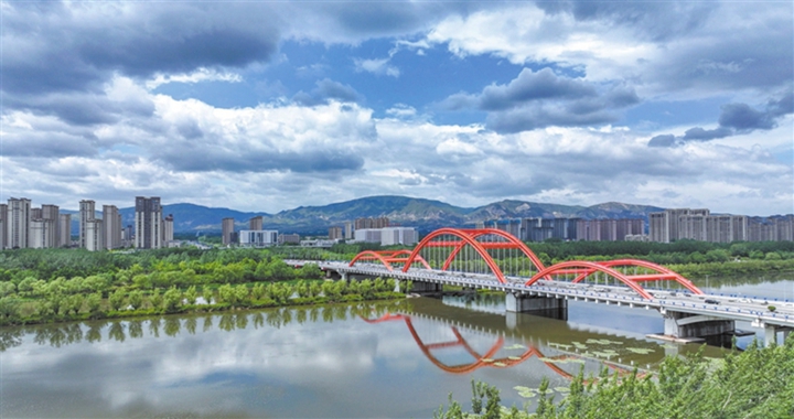 5月9日,臨汾市汾河文化生態景區碧空如洗、清雅靜美,滿目綠意、處處皆景。如今,綠色已成為臨汾最亮...