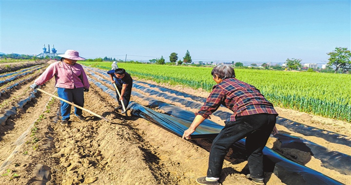 5月11日,在襄汾縣新城鎮柴村的田間地頭,農民正在種植紅薯。立夏過后,當地農民搶抓農時,積極種植...
