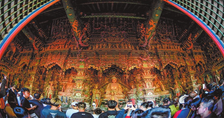 8月18日,游客在隰縣小西天景區參觀。據隰縣文旅部門數據,從7月1日至8月18日,小西天景區共接待游客...