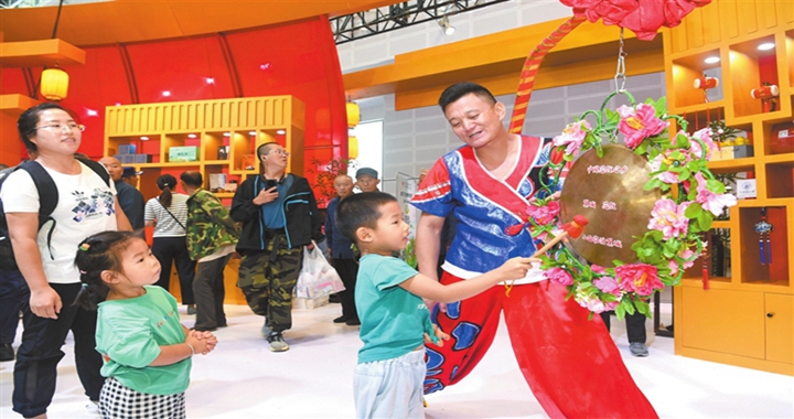 在第七屆山西文化產業博覽交易會上,翼城縣國家級非物質文化遺產代表性項目“翼城花鼓”、霍州鶯歌、...