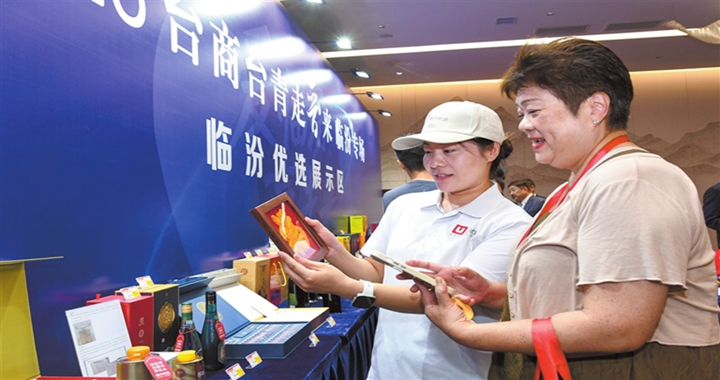 8月26日,2025年“臺商臺青走晉來”臨汾專場活動中,臨汾優選展示區琳瑯滿目的臨汾農優、文創以及非...