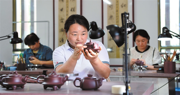8月16日,在華翔(洪洞)智能科技有限公司生產(chǎn)車間,工人在檢測空調(diào)壓縮機零件氣缸。據(jù)了解,該公司1-6...