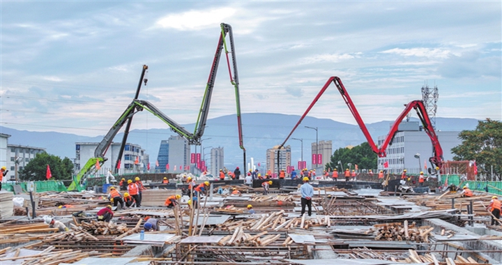 8月15日,市區(qū)快速中環(huán)北中環(huán)路關(guān)鍵節(jié)點冷庫段施工現(xiàn)場一片熱火朝天,施工人員正在緊張施工。該工程...