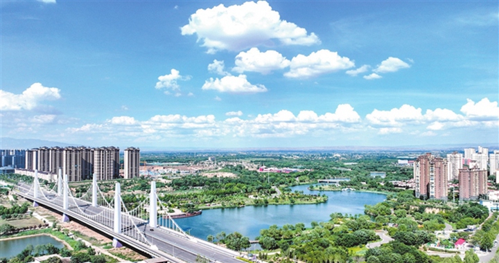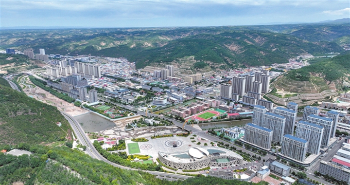 7月16日,航拍鏡頭下的蒲縣縣城區域,高樓、公園、綠地交相輝映,城市面貌日新月異。近年來,蒲縣扎...