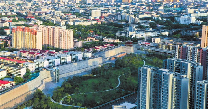 近日,航拍鏡頭下的市區古城公園城墻三期保護修繕工程已修復完成區域,與現代建筑交織成一幅獨特的城...