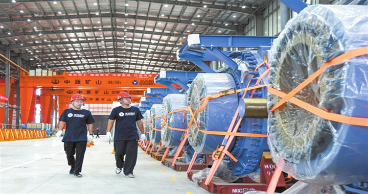 近日,山西運達智能風機裝備制造襄汾基地的技術人員在檢查封裝后的風電機組設備。該公司是集大型風力...