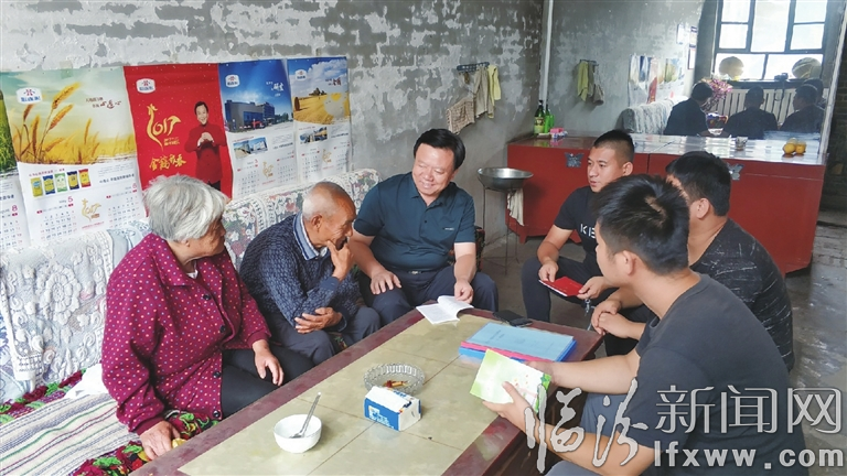 張王平與駐村工作隊隊員一起看望慰問長期患病的貧困戶曹慶柱夫婦,為他們解讀最新的醫(yī)保政策。