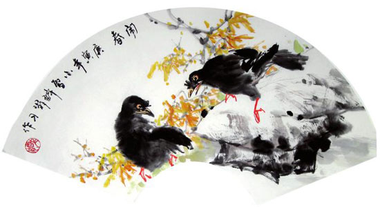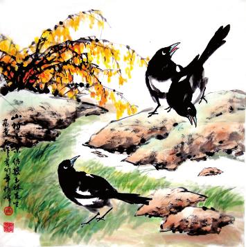 其二,他畫作題材不單調,有論者贊賞他的葫蘆,這當然不錯。依我看,他的石榴、紅果、玉蘭,也頗有韻致。村野田園的景物多得很,希望他眼界更放開些,讓自己的畫作題材更寬廣些,畫起來更大膽些。這里我說不單調,只是相對現有的作品而言。我個人不太贊成將中國畫家分為花鳥畫家、人物畫家、山水畫家等。我認為,畫家就是畫家,應面對整個自然界和人類社會,有感即發,有感而畫。上述分類,是理論的誤導,是傳統的弊病,是作繭自縛。