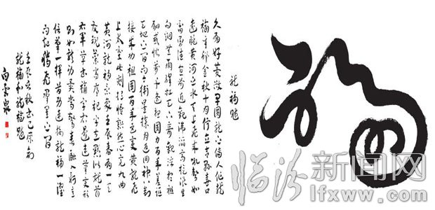 臨汾新聞網(wǎng)訊(記者 劉晚)龍年歲末,我市書協(xié)會員侯觀發(fā)創(chuàng)作成功一丈六尺的創(chuàng)意榜書“飛龍福”寓意黃龍成為可上九天攬月、可下五洋捉鱉的飛龍。龍的傳人才有洪福。