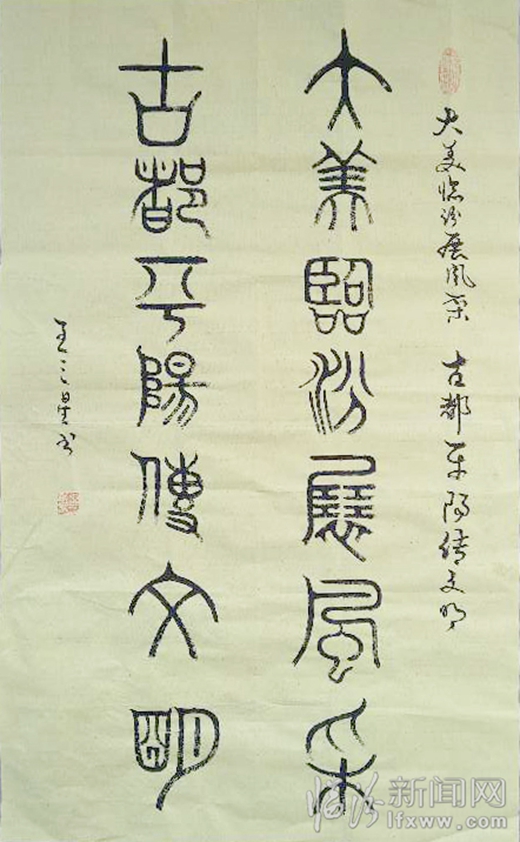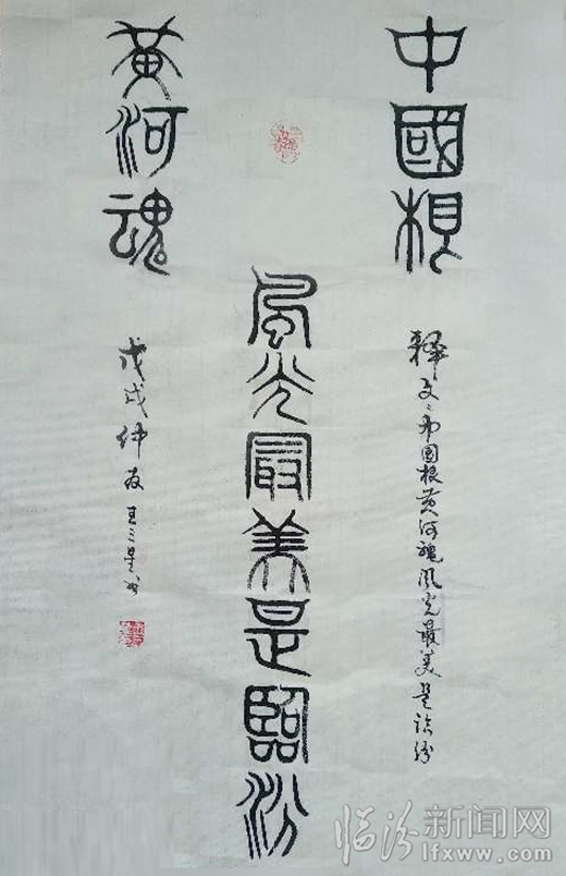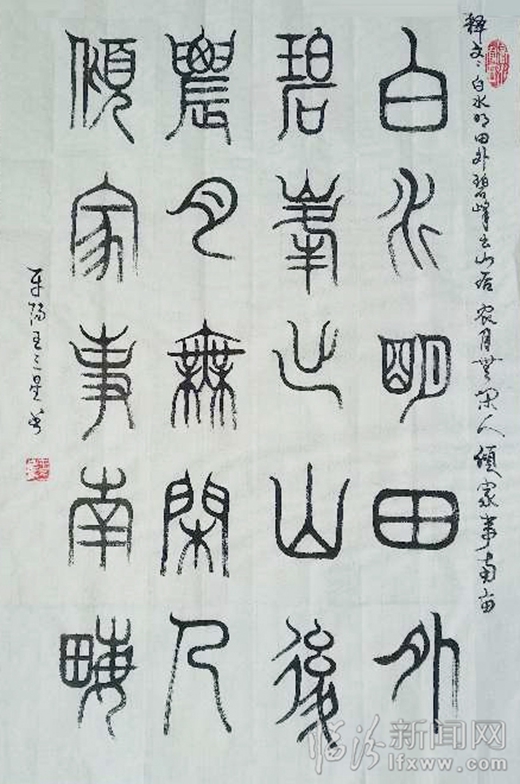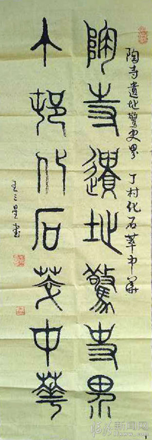 作者藝術簡歷:王三星,男76歲,堯都區毿淇村人,系原臨汾市委宣傳部副部長兼市委講師團團長。中國老年書畫會會員,山西省硬筆書協會員,臨汾市老年書畫會常務副主席。書法以草篆見長,多次參加省及全國書法大賽并多次獲獎。作品入選全球華人書畫家邀請展,中國人民解放軍歷史陳列館永久收藏,與人合作舉辦過書法展覽。著有并出版《求知與勞作》《王三星書法習作》,主編有《中國臨汾》《風景這邊獨好》《華夏第一都——臨汾》《晉商史料全覽臨汾卷》《臨汾宣傳55年》《祖國頌》等書。