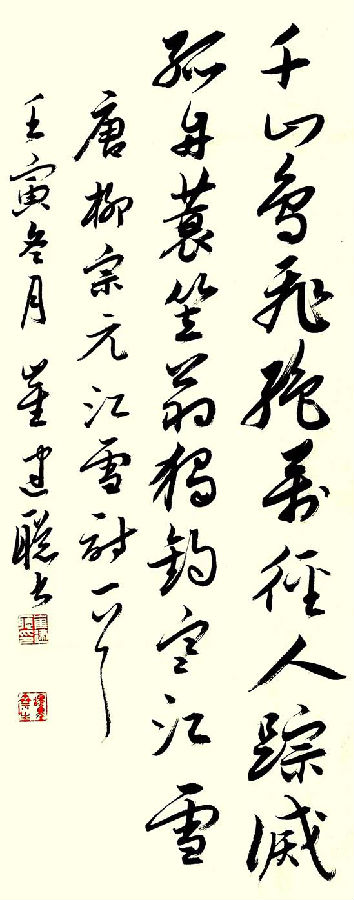 書(shū)香中國(guó),墨香家園。當(dāng)我們?cè)诳旃?jié)奏的步伐中為生活而奔波的時(shí)候,我們是否應(yīng)該停下腳步,駐足于書(shū)聲瑯瑯、翰墨飄香的藝術(shù)之境,以此來(lái)呵護(hù)我們即將枯竭的精神港灣和漸行漸遠(yuǎn)的詩(shī)意人生?我想,這正是我們敬仰類(lèi)似于崔建聰?shù)囊慌鷷?shū)法藝術(shù)家的示范意義所在。(蔣應(yīng)紅)
