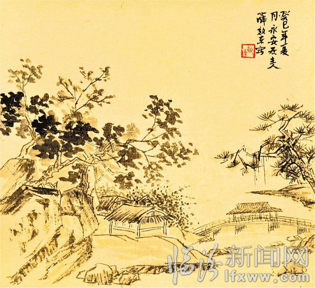 冬日的古城公園,寒意彌漫,草木寂寥。公園一隅,《簡意》——薛效東國畫作品展靜悄悄開展了。沒有鮮花,沒有盛大的開幕式,卻于蕭索中涂抹出一道溫暖的亮色。走進展廳,四壁懸掛著先生近年創作的百余幅水墨山水畫,但見山巒奇崛,水聲渺遠,古木掩映下,茅舍儼然,清風撲面,氤氳出素樸淡雅的古典氣韻。前來觀展的各界人士或駐足、或品賞,無人喧嘩,安安靜靜,用心體味先生用簡約、簡潔的筆墨,勾勒出的悠遠意境和豐富內蘊,品啜著他遵循傳統的藝術思想與平靜安然的內心世界。