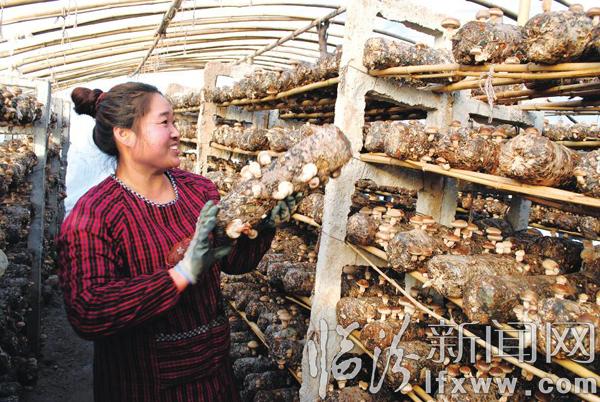 臨汾新聞網(wǎng)訊 曲沃縣綠康源香菇有限公司是一家集種植、銷售、深加工為一體的現(xiàn)代農(nóng)業(yè)產(chǎn)業(yè)化示范企業(yè)。目前,該企業(yè)投資1000余萬元,采用新型鋼架結(jié)構(gòu)進(jìn)行香菇栽培,現(xiàn)已投產(chǎn)50余畝,年可產(chǎn)香菇1000余噸,解決農(nóng)村剩余勞動(dòng)力100余人。圖為工人正在采摘香菇。 張榮 攝
