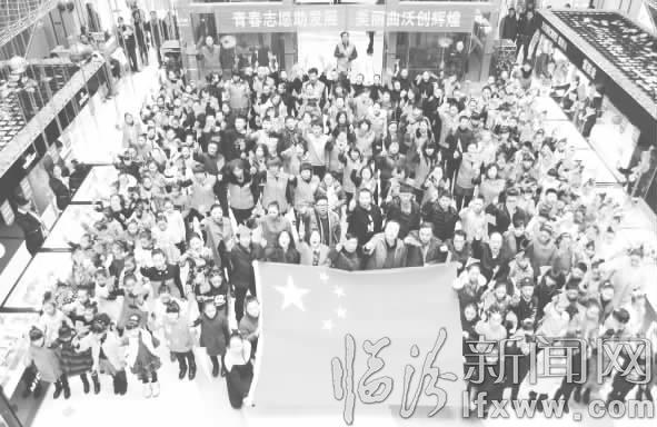 臨汾新聞網訊 日前,共青團曲沃縣委、曲沃縣青年志愿者協會、曲沃縣電視臺聯合在該縣新東城購物廣場一樓以“快閃”的形式向全縣人民拜年。演員們以大家喜聞樂見的舞蹈、歌曲、合唱等形式喜迎2016年新年到來,共同祝愿祖國更加美好。(張榮)