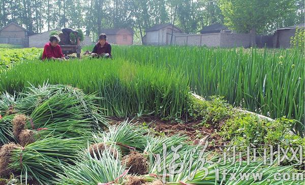 臨汾新聞網訊 近年來,曲沃縣北董鄉依靠土地肥沃、水資源充足等有利條件,大力發展蔬菜種植,形成了產銷兩旺的局面,有效增加了當地農民的收入。圖為該縣許家堡村村民甄根平一家正在田間挖蔥捆綁,等待菜販上門收購。(張榮)