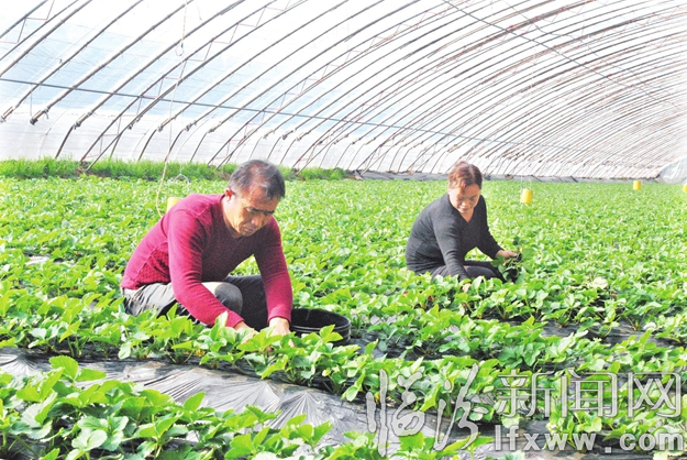 臨汾新聞網訊 近日,在曲沃縣史村鎮西海村紅運草莓園里,楊紅運夫婦正在管護草莓苗。他們通過采取搭建空間大、采光好的無后墻第六代日光溫室大棚,引進草莓新品種,施純天然綠色無公害生態有機肥等相關措施,實現草莓達到個大、味甜的效果,有效增加收入。