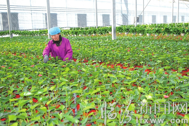 臨汾新聞網訊 近日,在曲沃縣綠恒農業觀光園區溫室大棚花卉基地,工作人員正在管護花卉。據悉,該園區著力打造高效、生態、安全的現代農業,結合溫室大棚的優勢與特點,與北京尚王園藝科技共享合作。將原有的蔬菜設施改造成花卉基地,如今,40余萬株鳳梨、紅掌、綠籮等花卉全部進駐大棚,部分花卉已到出貨期,遠銷北京等地,市場供不應求,花卉基地呈現產銷兩旺的良好勢頭。(張榮)