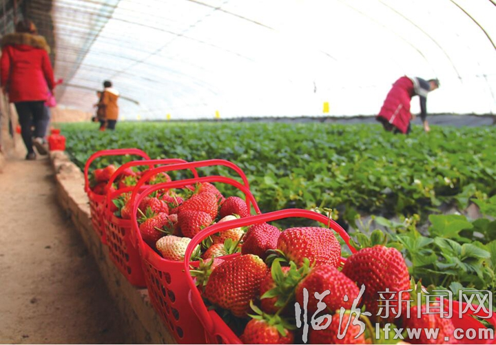 臨汾新聞網訊 近日,在曲沃縣史村鎮西海村紅運草莓園里,游客正在采摘草莓。據了解,紅運草莓園主人楊紅運引進先進的溫室草莓技術,產出的草莓個大、色紅、口味甜,按采摘價每公斤30元計算,日收入可達1000元左右。