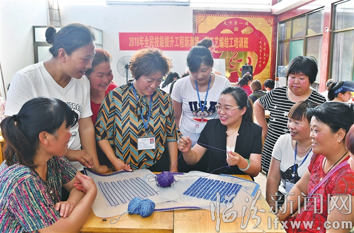 臨汾新聞網訊 7月25日,在曲沃縣里村鎮中立村,曲沃新潮技校的老師在指導農村婦女工藝編織技巧。曲沃縣2018全民技能提升工程新潮工藝編結工培訓班開班以來,在小飾品、掛件、網店運營及銷售等方面通過專業技能培訓,讓更多的手工編織愛好者、農村困難婦女參與到手工編織中,提升脫貧致富本領和自我發展能力。