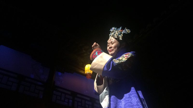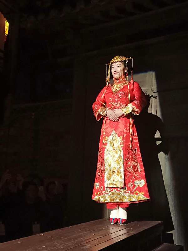 "昨晚的實景演出,王夫人被封一品誥命夫人那場最感人,主演王夫人的演員非常入戲,眼淚都落在舞臺木架上,真情流露,情景交融,仿佛穿越到那個時代。"